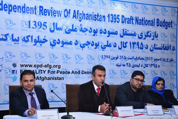The EQUALITY for Peace and Development (EPD) launched the Independent Review of Afghanistan 1395 National Budget Draft on 16th December, 2015 in a ceremony which was attended by representatives of civil society, media and government officials. It is the fifth annual report that is published in English, Dari and Pashto and provides a snapshot of resources, allocations, and Public Finance Management Performance (PFMP). Read More…